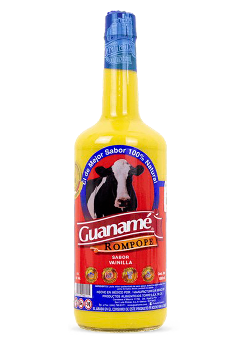 Guanamé’s vanilla-flavored rompope is a traditional dairy beverage made with ingredients such as milk, sugar, and natural flavorings, distinguished by its creamy texture and characteristic yellow color. This type of product belongs to the category of traditional Mexican beverages, widely recognized for their cultural and gastronomic value.